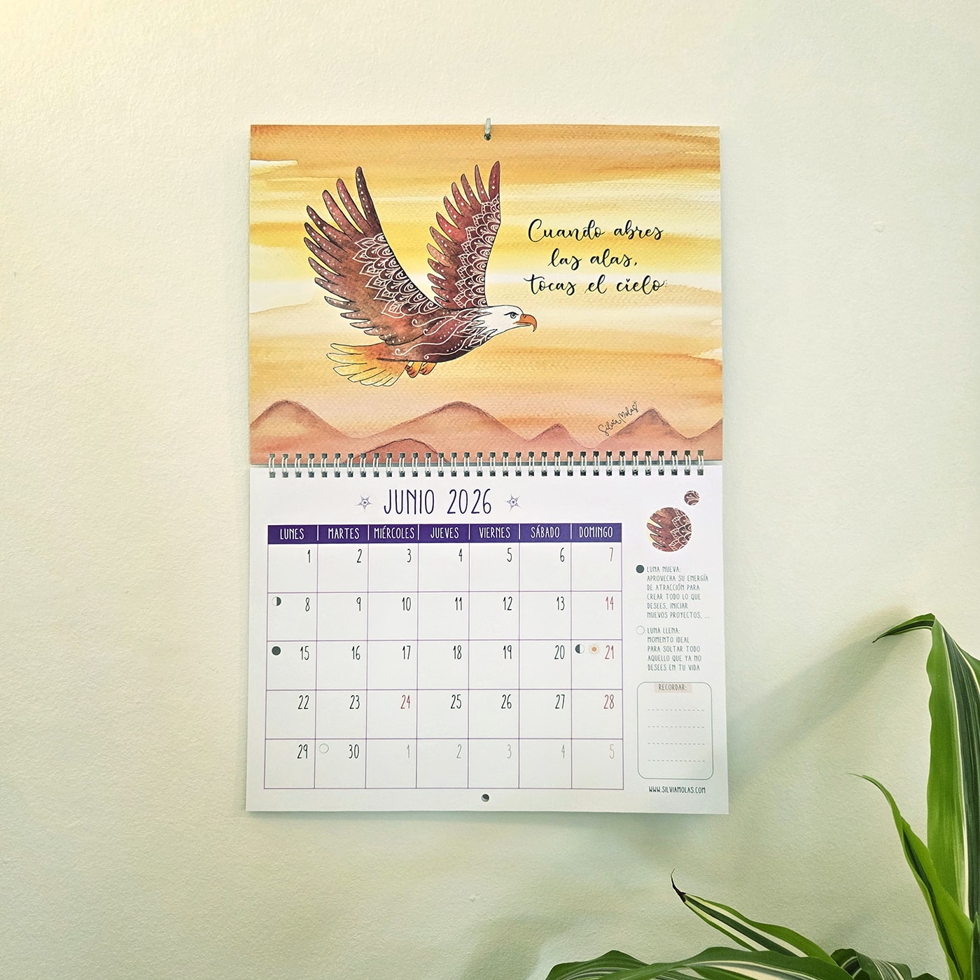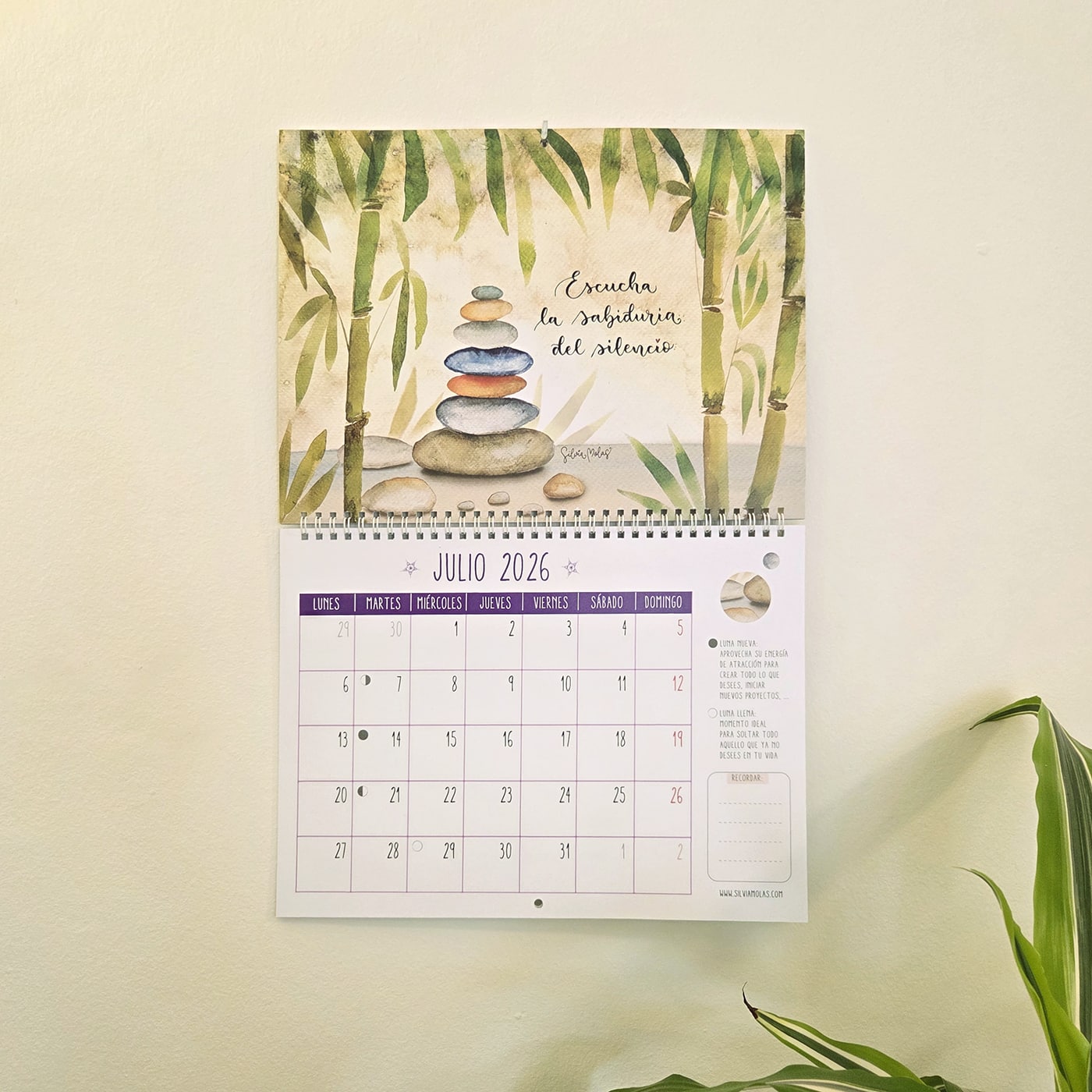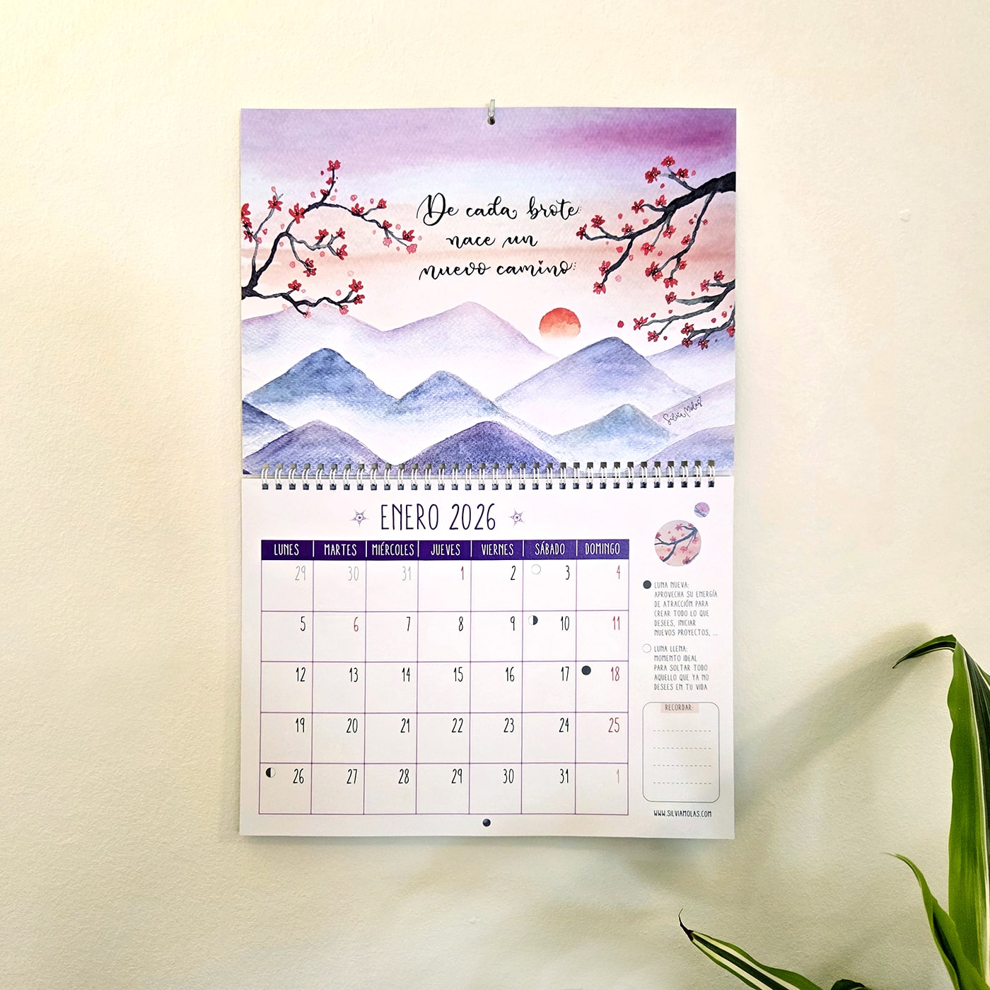 Calendari conscient de paret amb 12 il·lustracions creades amb aquarel·la i tinta. Cadascuna d’elles amb una frase escrita a mà, que t’inspirarà a viure una vida més conscient i connectada amb el teu cor.