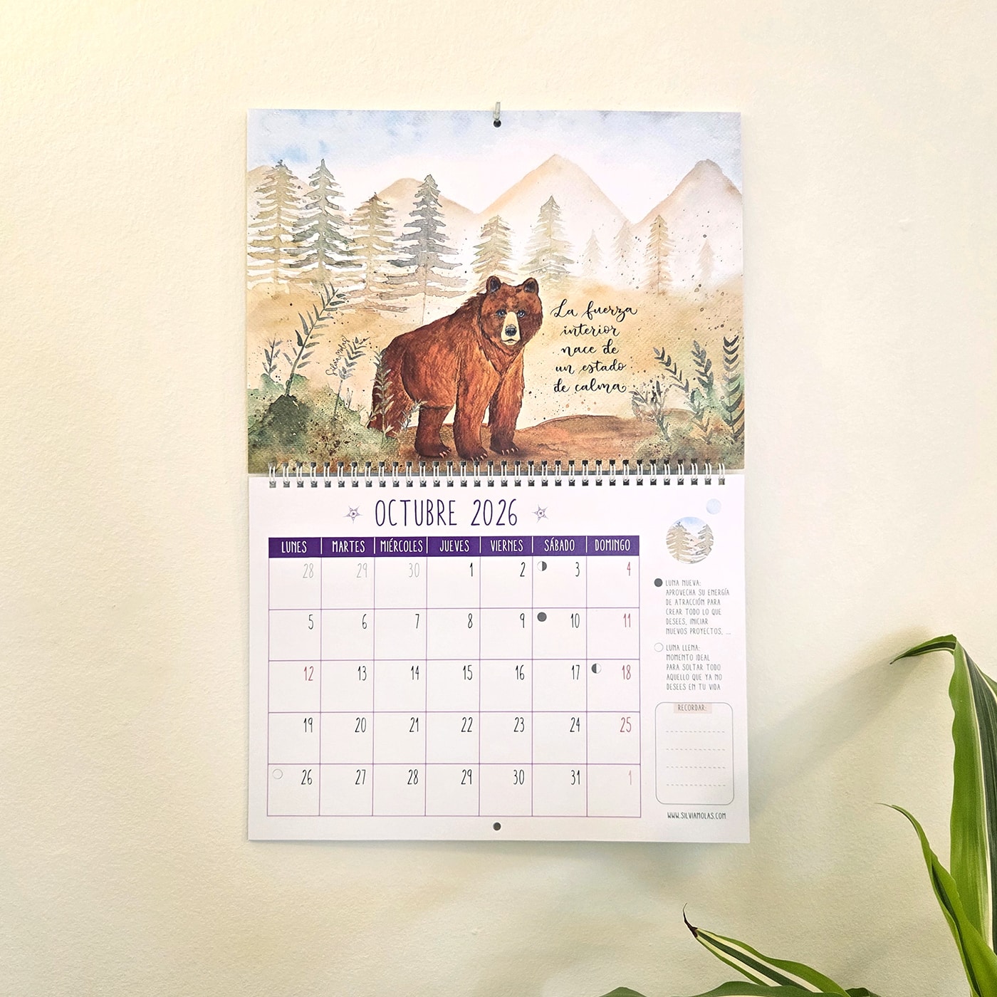 Conté totes les fases lunars, les estacions i un espai per escriure les teves notes.