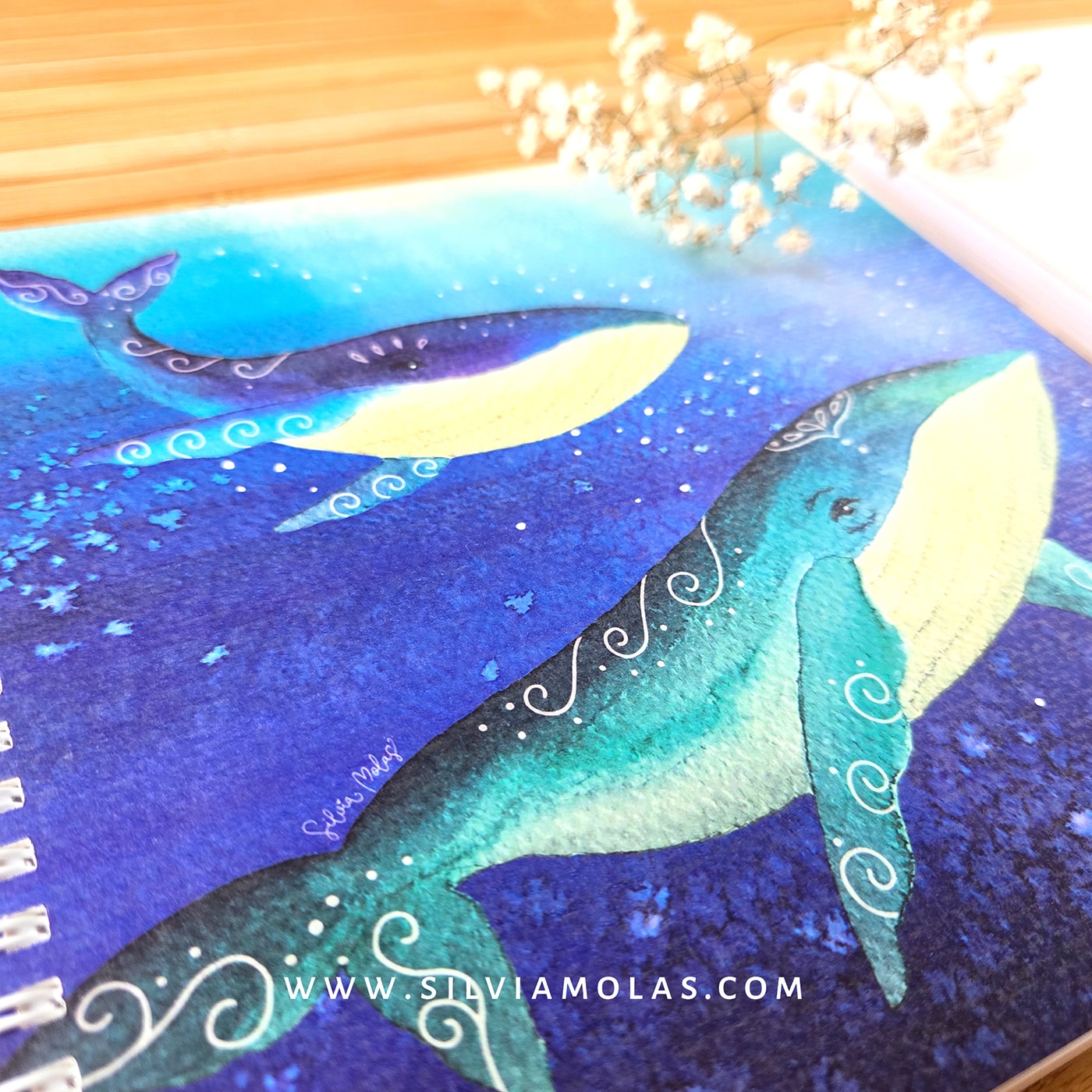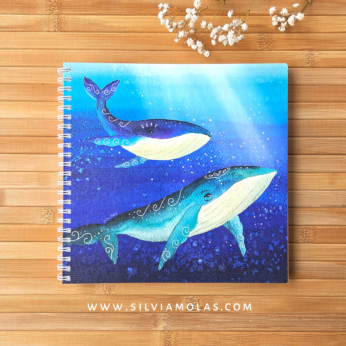 Llibreta 20×20 cm “Balenes”. La intuïció coneix el camí.