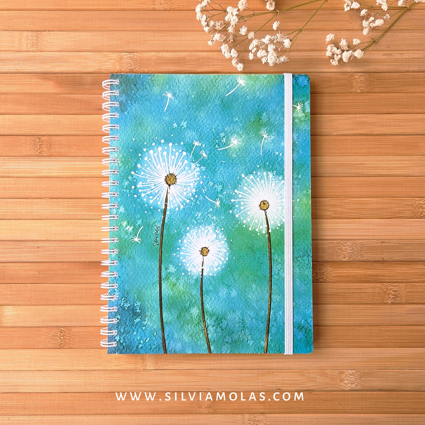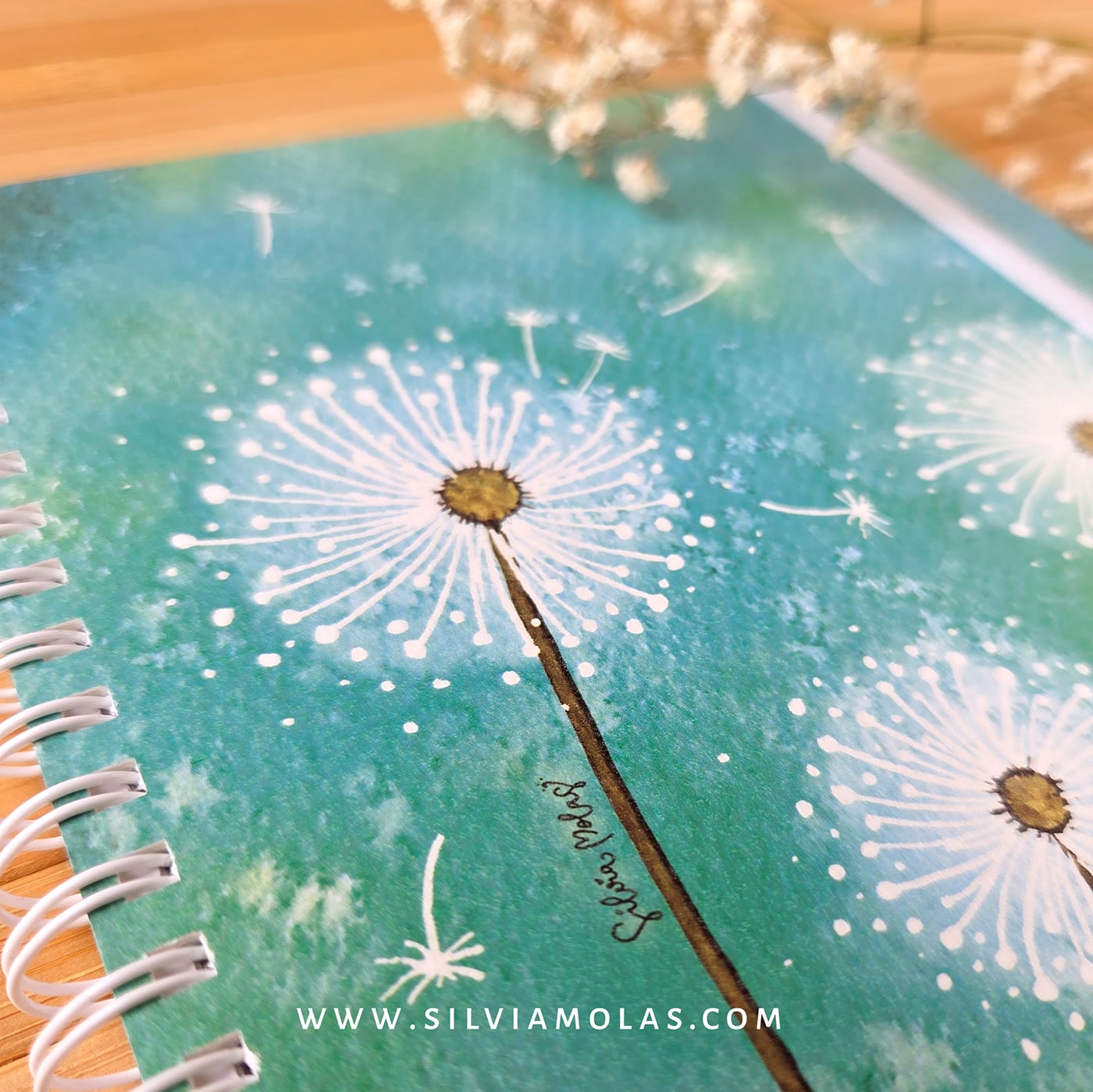 Llibreta A5 (15×21 cm) “Dent de lleó turquesa”. Els desitjos són llavors creant realitats.