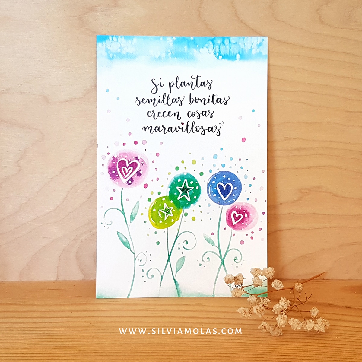 - Lámina 10×15 cm “Si plantas semillas bonitas, crecen cosas maravillosas”