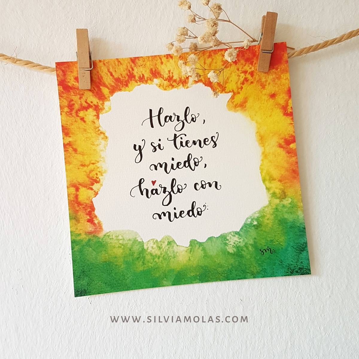 - Lámina 14×14 cm “Hazlo, y si tienes miedo, hazlo con miedo”