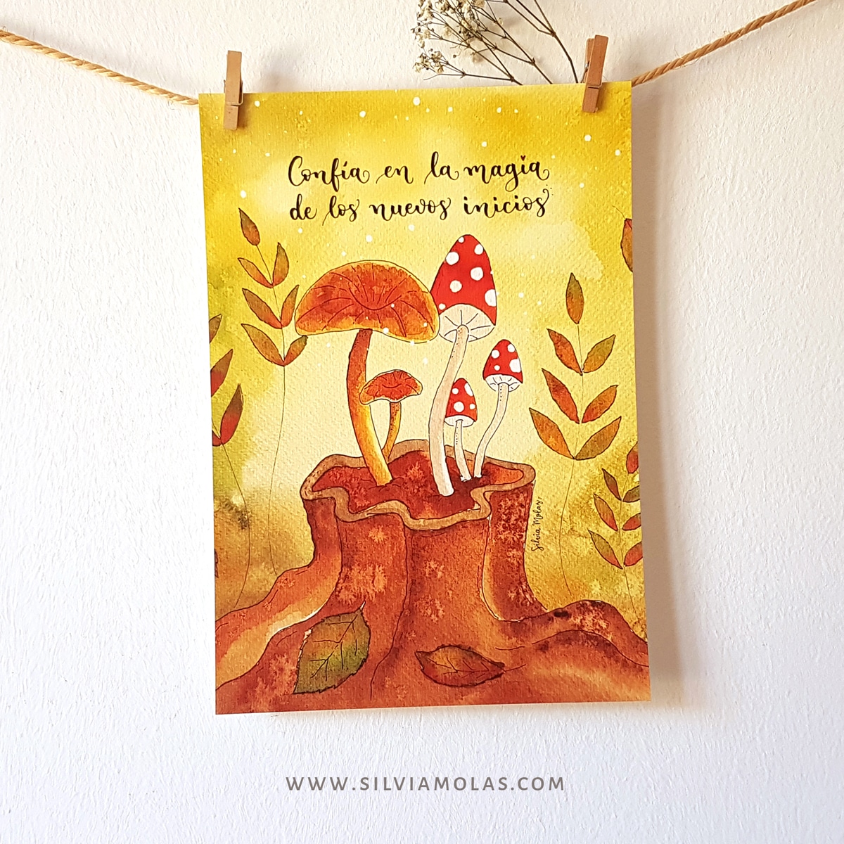 Esta lámina es una reproducción de obra original con acuarela y tinta, creada con mucho amor, con regalo de sobre personalizado con el nombre (opcional).