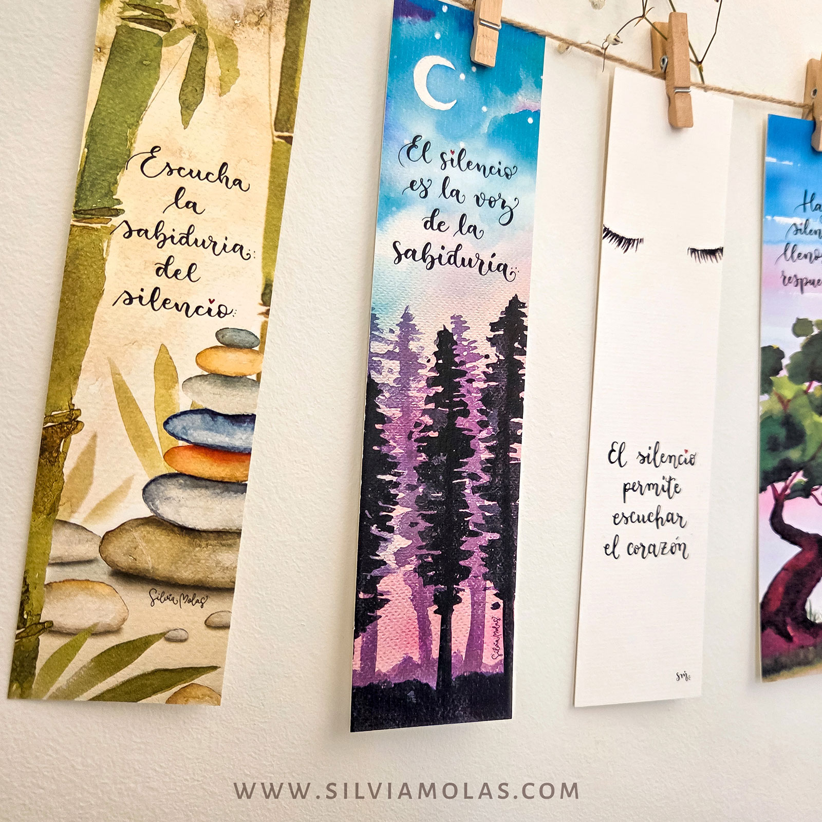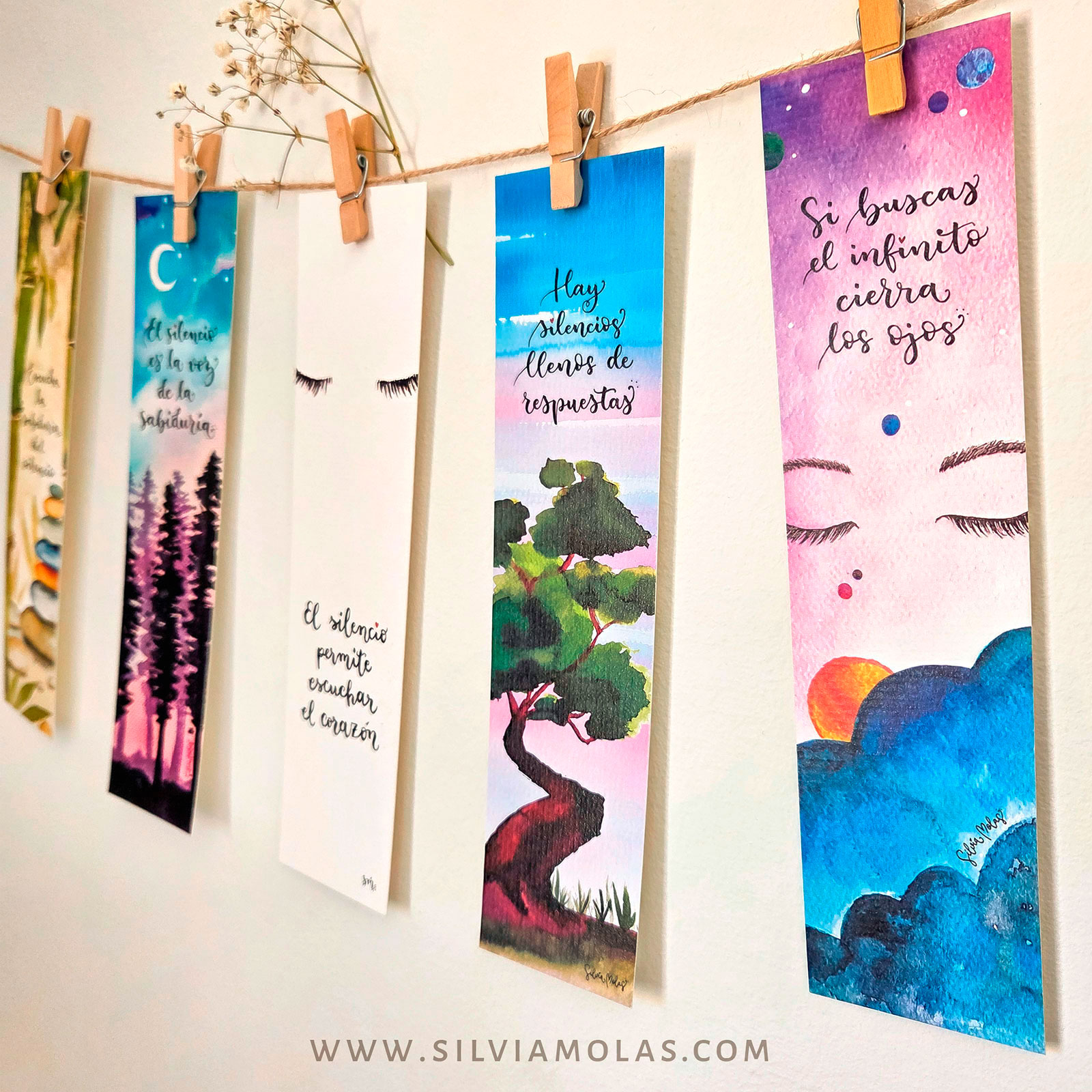 El pack “Silencio” contiene una selección de 5 puntos de libro con frases e ilustraciones que nos recuerdan el poder de la calma y la meditación. Nos inspiran a volver a nuestro centro, a un estado de paz y serenidad interior tan necesario y enriquecedor para nuestro bienestar.