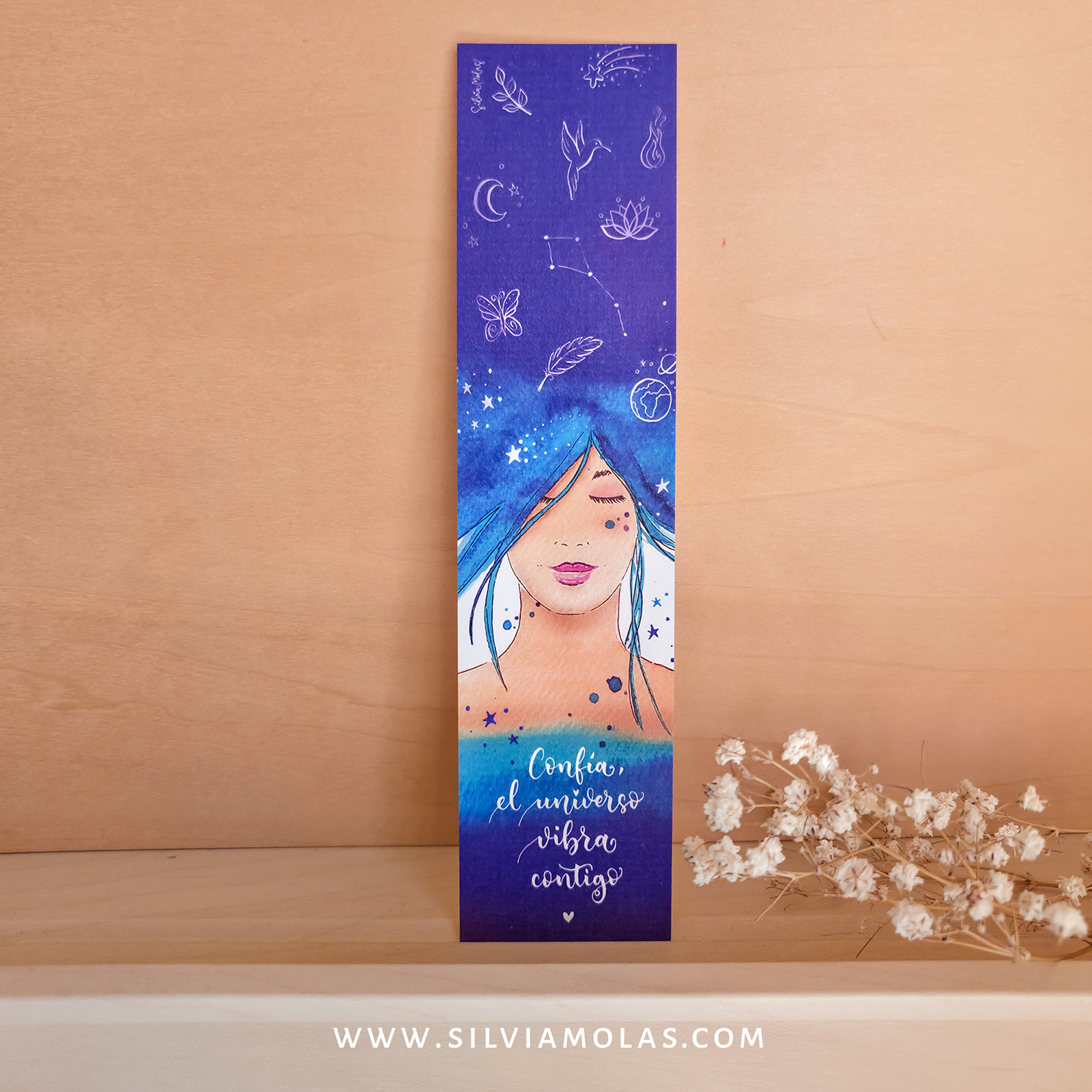 Cada punto de libro es una reproducción de obra original, pintada con aquarela y tinta, acompañada de una frase inspiradora.